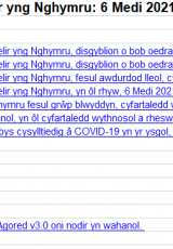 • Roedd cyfartaledd o 1.9% o ddisgyblon oedran cynradd a 2.2% o ddisgyblion oedran uwchradd yn absennol oherwydd rheswm hysbys cysylltiedig â COVID-19 rhwng 18 Hydref i 22 Hydref 2021.