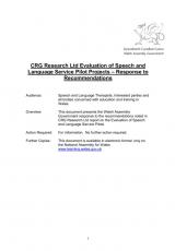 Prosiectau peilot y Gwasanaeth Lleferydd ac Iaith ar draws: ymateb i argymhellion , Saesneg yn unig, math o ffeil: PDF, maint ffeil: 163 KB