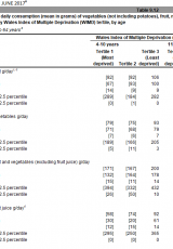 Mae’r lefelau ar gyfer bwyta ffrwythau a llysiau, sudd ffrwythau a dognau “5 y dydd”, gan gynnwys prydau cyfansawdd, wedi’u cywiro. Y camgymeriad oedd cynnwys grwpiau bwyd a ddylai fod wedi’i heithrio o’r cyfrifiad 5 y dydd. Mae’r gwerthoedd cywir ar gyfer Blynyddoedd 2-5 ychydig yn is, felly, na’r gwerthoedd a gyhoeddwyd yn wreiddiol, ond mae’r casgliadau cyffredinol ynghylch bwyta ffrwythau a llysiau yn dal yr un fath. Mae manylion y fethodoleg ar gyfer amcangyfrif faint o ffrwythau a llysiau a fwyteir a chyfrifo dognau 5 y dydd i’w gweld yn Atodiad A.