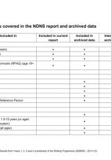 Atodiad W: pynciau a drafodir yn yr adroddiad NDNS a data wedi'i archifo , Saesneg yn unig, math o ffeil: PDF, maint ffeil: 159 KB