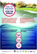 Cyngor i atal rhywogaethau estron goresgynnol rhag lledaenu ar offer a dillad chwaraeon dŵr.