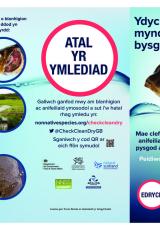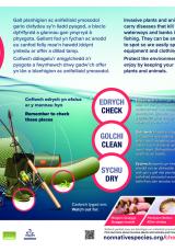 Cyngor i atal rhywogaethau estron goresgynnol rhag lledaenu ar offer a dillad.