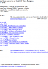 Safleoedd clwstwr damweiniau a damweiniau angheuol ar Rhwydwaith Ffyrdd Traws-Ewropeaidd Cymru, 2014 i 2016: tablau , Saesneg yn unig, math o ffeil: ODS, maint ffeil: 22 KB
