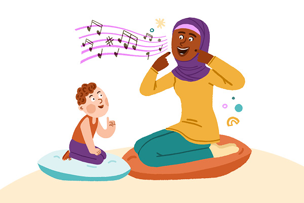 Cyngor gan yr NSPCC i dy helpu i ‘edrych, dweud, canu a chwarae’ gyda dy blentyn bob dydd.