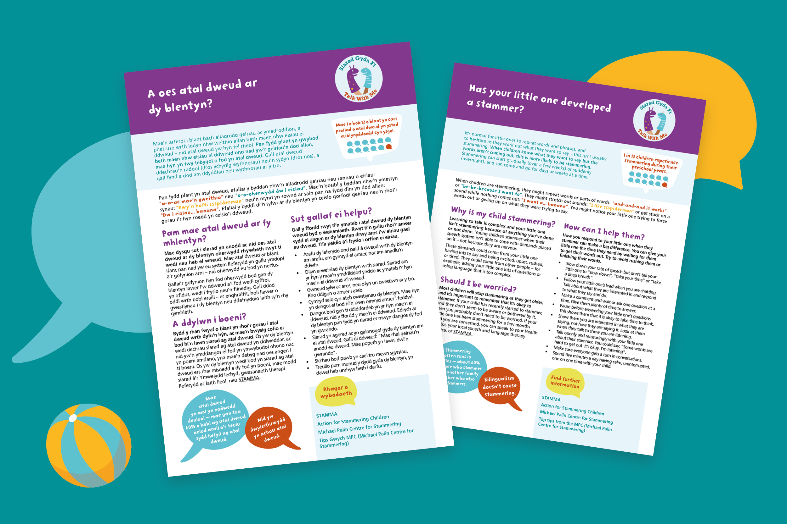 Ewch i’n taflen ffeithiau am wybodaeth a chyngor ar atal dweud.