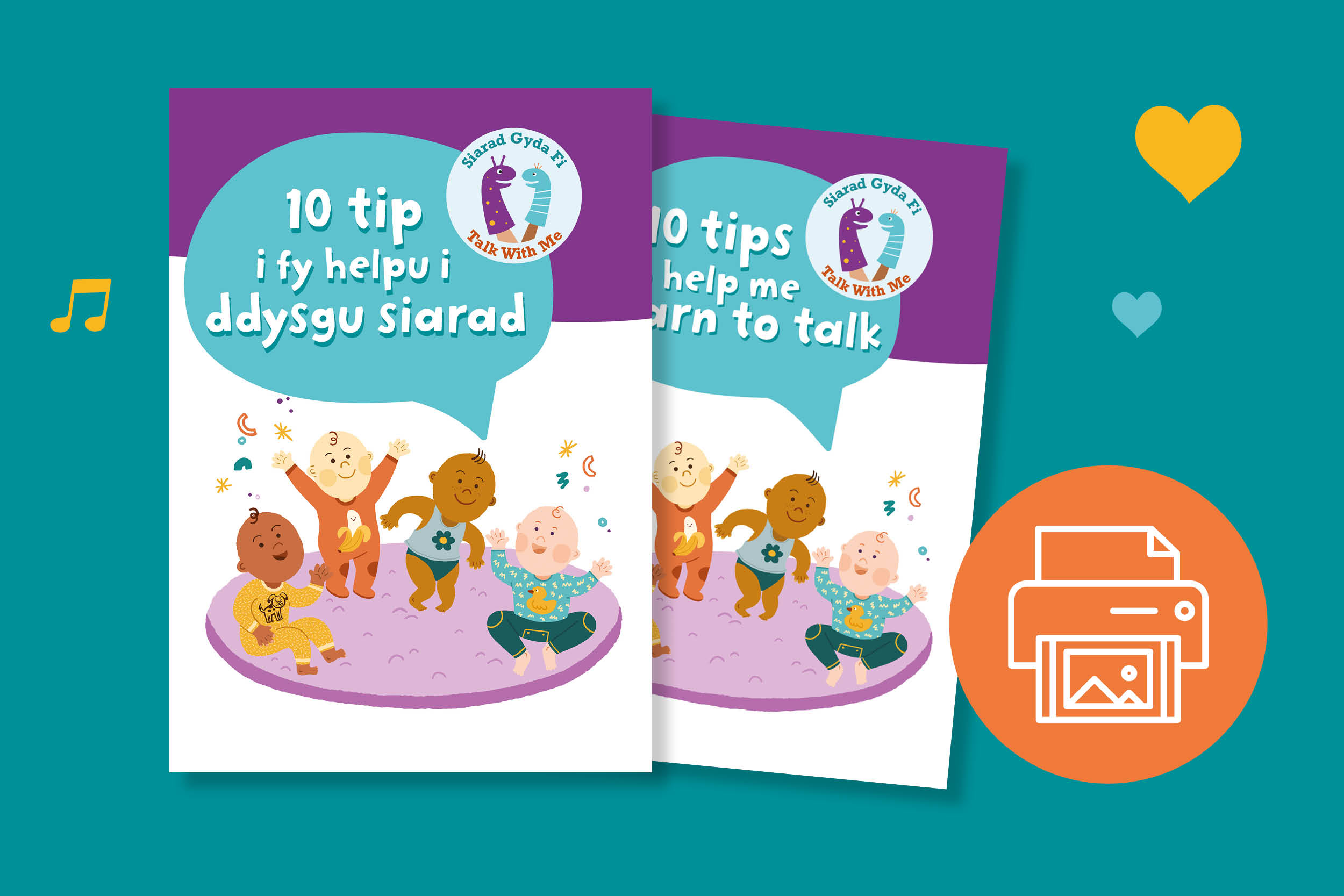 Llyfryn i’w argraffu i gael tips gwych i helpu dy blentyn i ddysgu siarad.