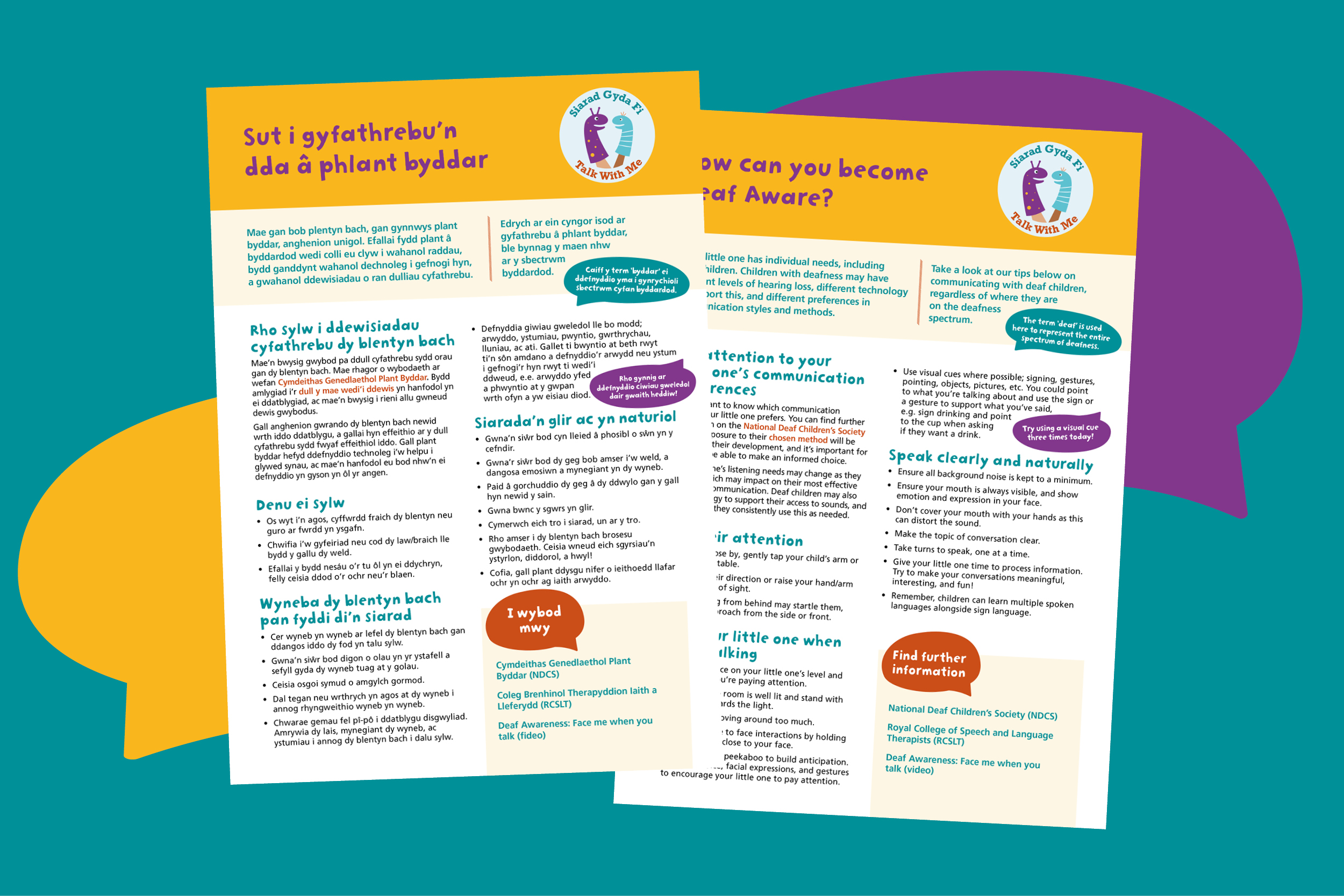 Rydym ni wedi casglu amrywiaeth o offer, awgrymiadau a chyngor at ei gilydd i helpu rhieni i ddeall pwysigrwydd eu rhan nhw o ran cael eu plant i siarad. Byddem ni wrth ein boddau pe byddet ti’n rhannu'r offer hyn â'r teuluoedd rwyt ti’n gweithio gyda nhw.