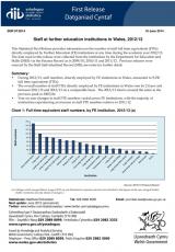 Staff mewn sefydliadau addysg bellach, Awst 2012 i Gorffennaf 2013 , Saesneg yn unig, math o ffeil: PDF, maint ffeil: 341 KB