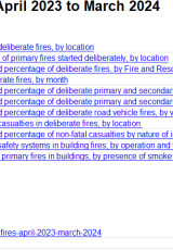 Tanau llosgi bwriadol: Ebrill 2023 i Fawrth 2024 , Saesneg yn unig, math o ffeil: ODS, maint ffeil: 52 KB