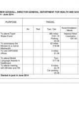 Mae hawliadau treuliau yn talu am wariant ar deithio, llety a chynhaliaeth yn ystod busnes Llywodraeth Cymru. Mae hefyd yn cynnwys cynigion o roddion a lletygarwch.