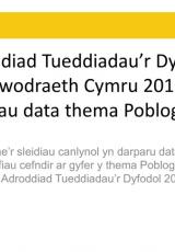 Mae’r thema poblogaeth yn defnyddio data o amcanestyniadau poblogaeth cenedlaethol sail-2016, a oedd yn amcanestyn twf ym mhoblogaeth Cymru dros y cyfnod 2016 i 2041. Mae’r amcanestyniadau poblogaeth cenedlaethol sail-2018 fwy diweddar yn amcanestyn gostyngiad yn y boblogaeth yn ystod yr un cyfnod; byddwn yn diweddaru’r thema hwn cyn gynted â phosibl.