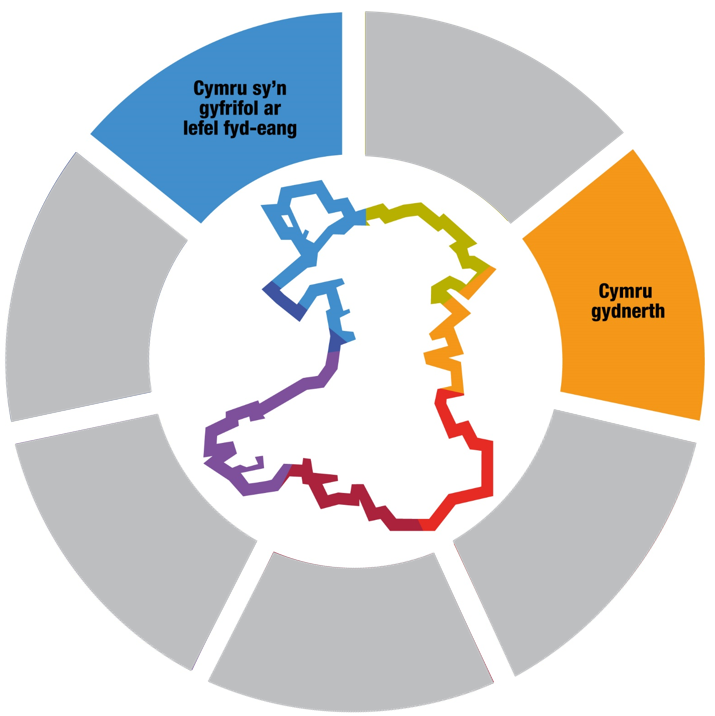 • Cymru sy’n gyfrifol ar lefel fyd-eang