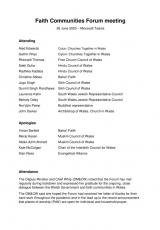 Cofnodion cyfarfod Y Fforwm Cymunedau Ffydd ar 26 Mehefin 2020.