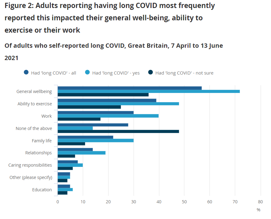 ONS: Coronavirus and the social impacts of ‘long COVID’ on people’s lives in Great Britain: 7 April to 13 June 2021