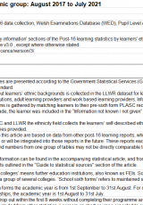 Ystadegau dysgu ôl-16 yn ôl grŵp ethnig y dysgwyr, Awst 2017 i Orffennaf 2021 , Saesneg yn unig, math o ffeil: PDF, maint ffeil: 799 KB