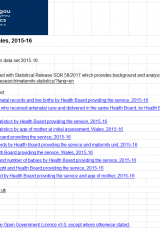 Ystadegau mamolaeth, Ebrill 2015 i Fawrth 2016: tablau , Saesneg yn unig, math o ffeil: ODS, maint ffeil: 216 KB