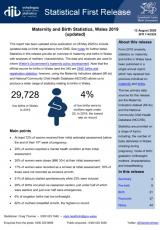 Ystadegau mamolaeth a genedigaethau, 2019 (diweddaru) , Saesneg yn unig, math o ffeil: PDF, maint ffeil: 3 MB